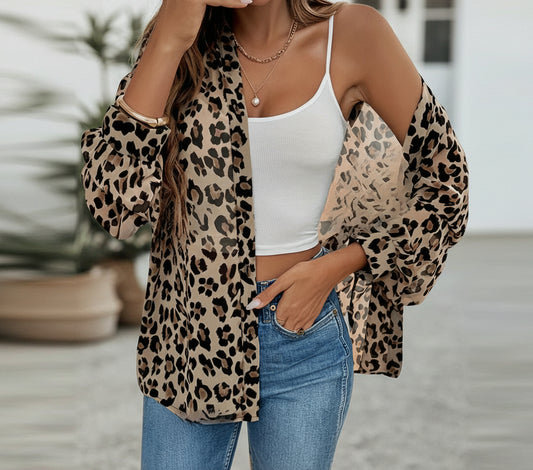 Elegant Leopard Print Long-Sleeved Loose Shirt