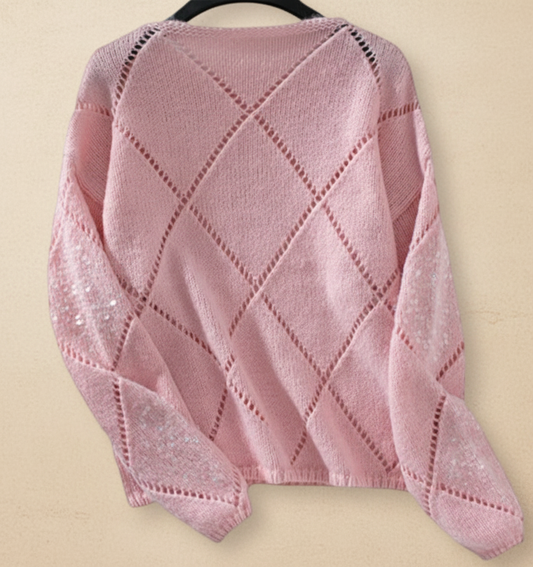 Hollow Rhombus Pattern Sequin Detailed Pullover Sweater